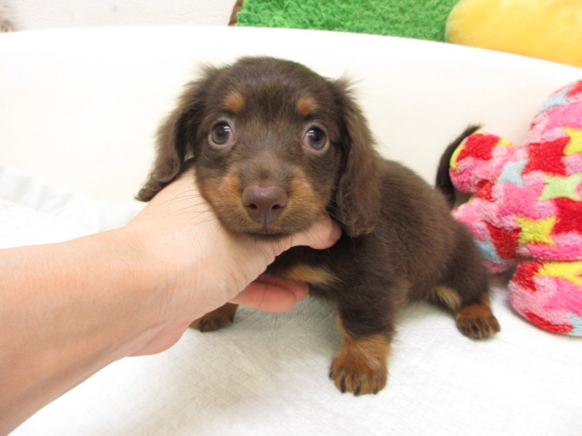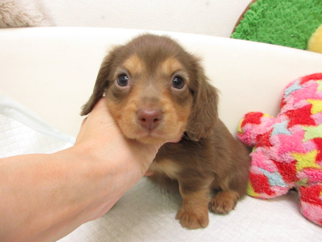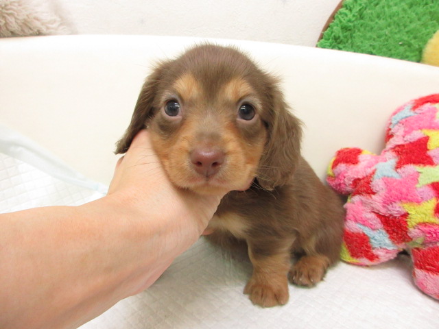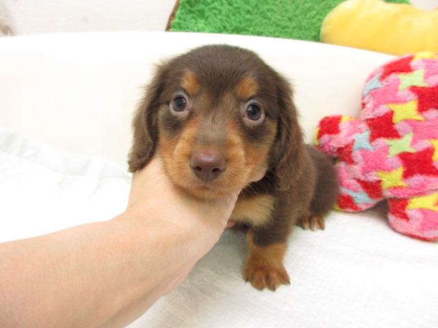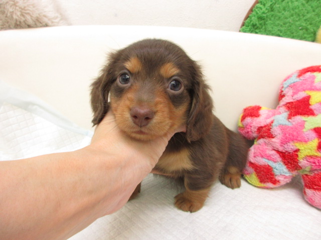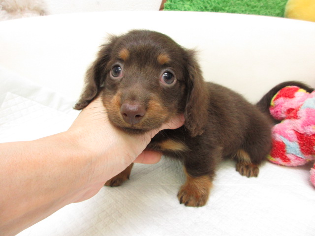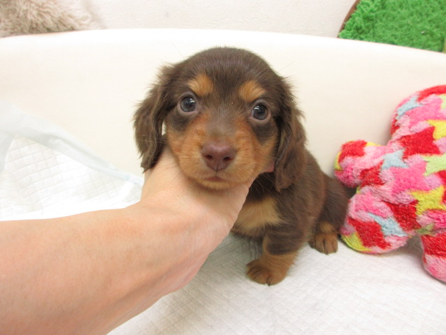 母:ミニチュアダックス、チョコレート&タン(ロングヘアード)。